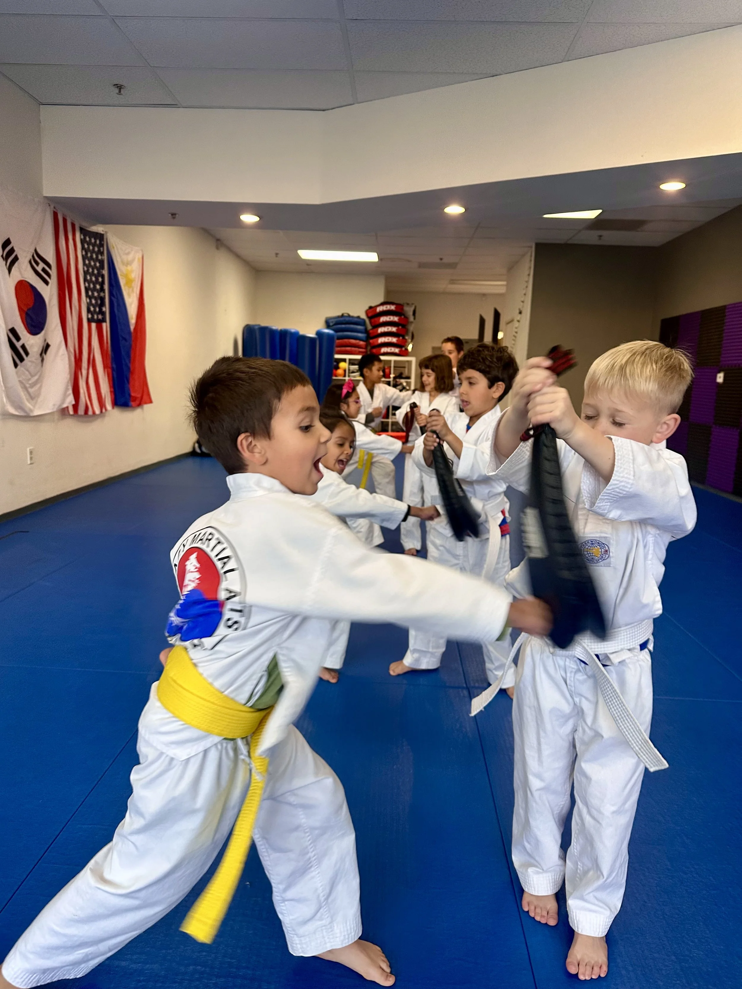 Our Tae Kwon Do - Kickboxing Children Class focuses on teaching kids self-awareness, self-control, and self-respect through martial arts, with the goal of obtaining a Black Belt in Tae Kwon Do. By combining Tae Kwon Do and kickboxing, students develop confidence and essential self-defense skills while fostering personal growth.